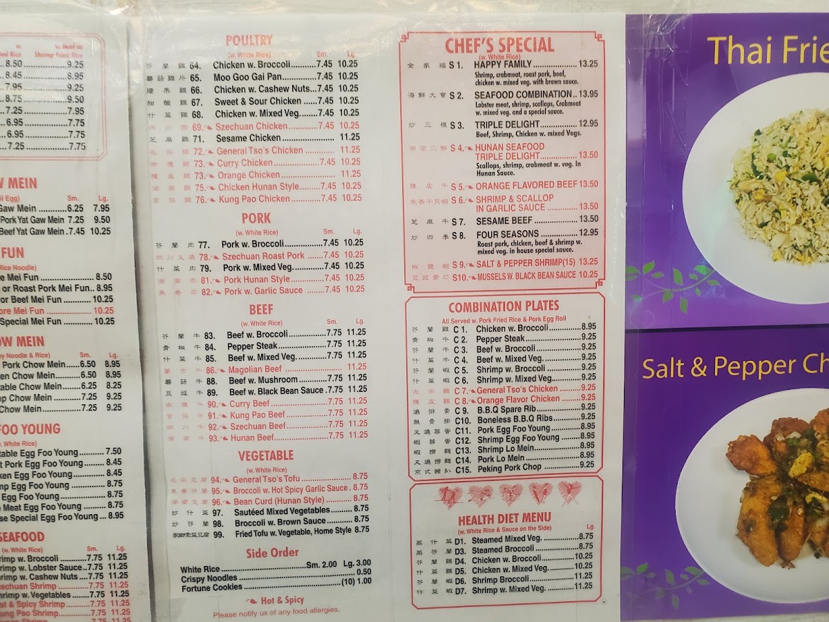 Many come here to enjoy satisfying plates like the House Special Egg Foo Young, where fresh ingredients and a light, savory gravy make for a comforting meal. The pork selections—ranging from simple broccoli stir-fries to dishes with garlic or Szechuan flavors—invite diners to explore a blend of bold and gentle tastes that pair well with white rice or noodles.
